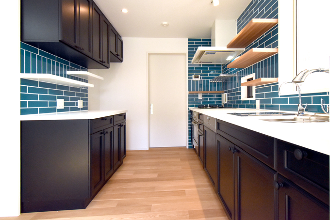 無垢のケービングを使った和洋折衷な海外製キッチンの実例